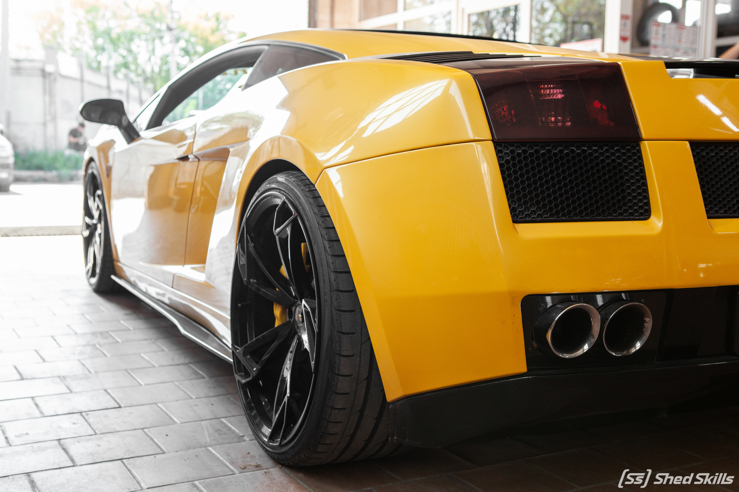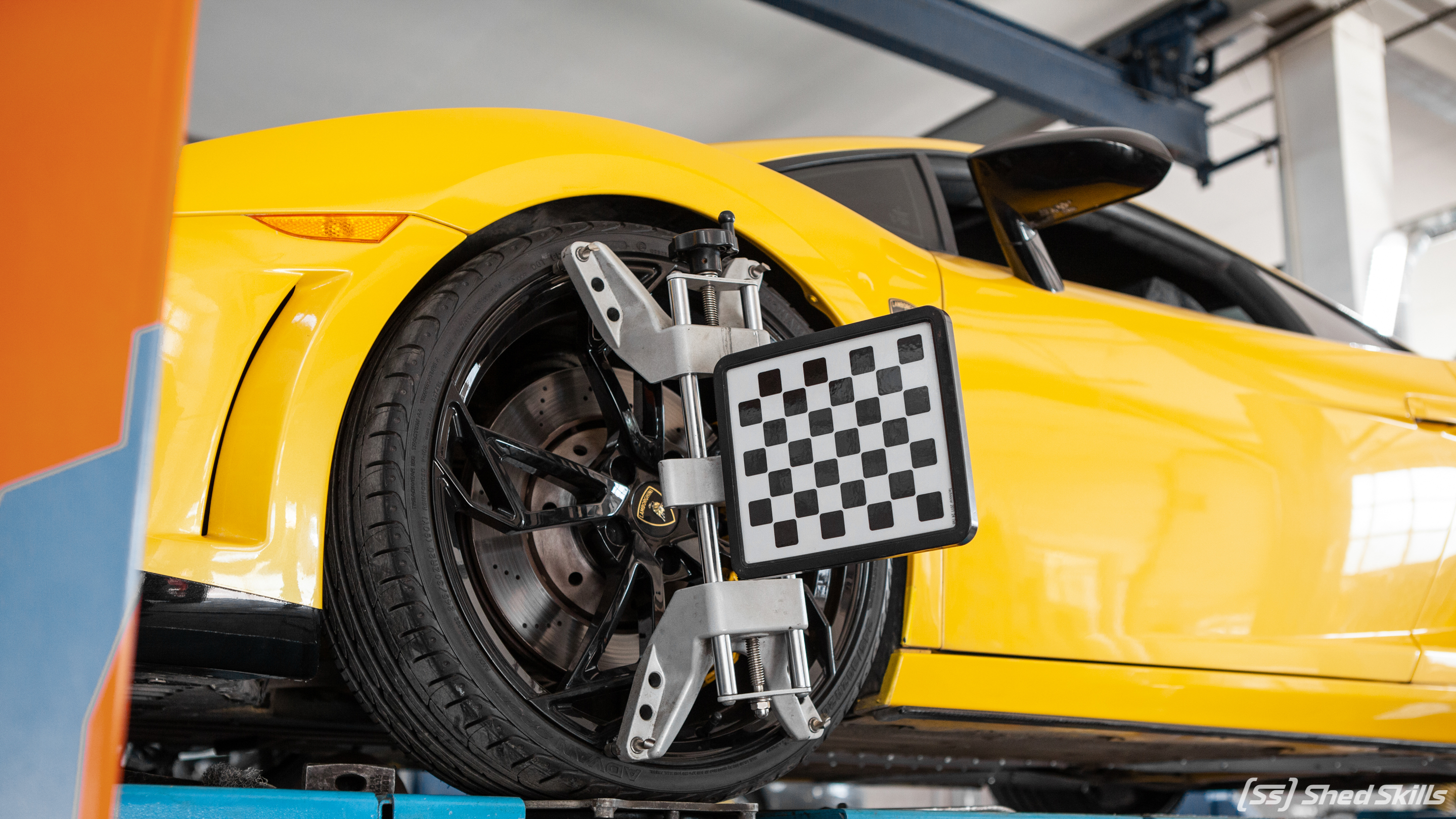 Автомобиль Lamborghini Gallardo посетил автомастерскую ShedSkills с целью регулировки углов колес.