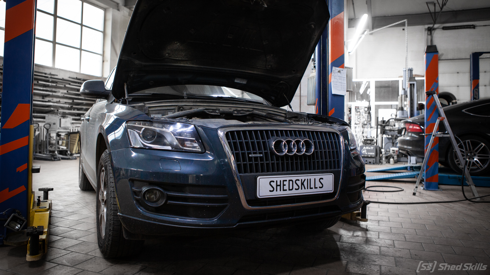 Audi Q5 приехал в автомастерскую на плановое ТО с жалобами на стук в подвеске и чек на приборной панели. В результате полного осмотра, были обнаружены несколько проблем, которые были решены путем замены верхних рычагов передней подвески и заменой клапана регулировки фаз ГРМ.