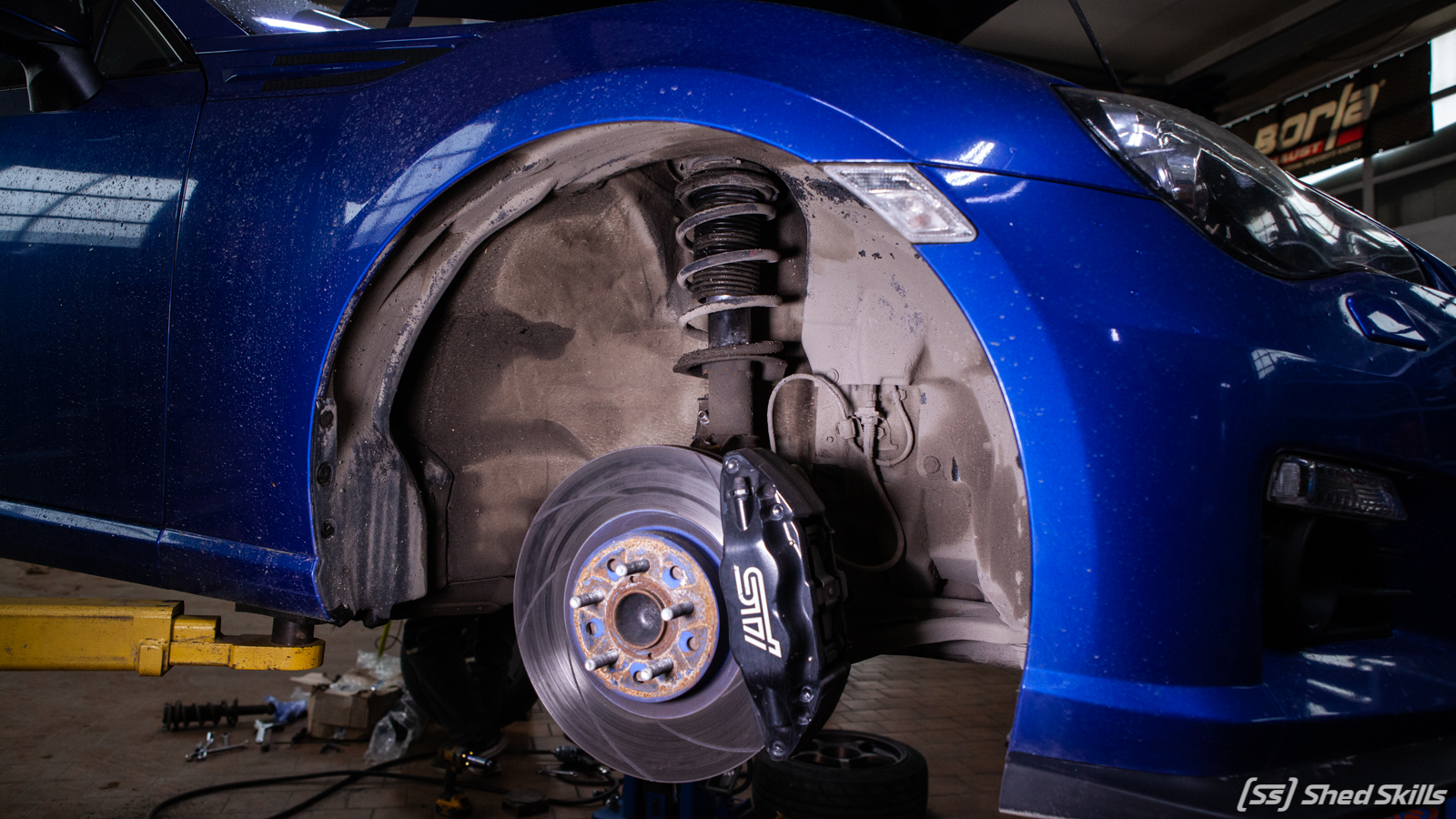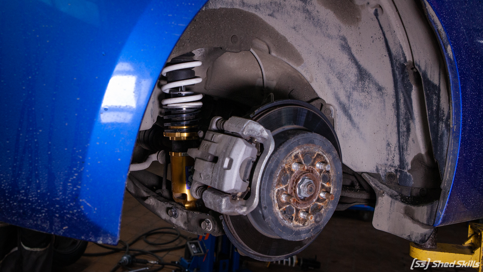 Перейдем от теории к практике. На автомобиле мы заменили подвеску на новую HKS Hipermax, по факту, самой щадящей модели Max 4 SP. Чтобы на такой подвеске было комфортно передвигаться в городе, но она была достаточно жесткой для отличной управляемости на гоночном треке. Зачем устанавливают регулируемую подвеску на спортивные автомобили (или попросту «койловеры»)? Ответ прост — чтобы настроить ее под свою манеру езды, под определенную конфигурацию трека или под нужный клиренс. Главное — грамотная регулировка и синхронизация колес (чтобы сцепление с дорогой было на всех колесах одинаковым и нагрузки распределялись равномерно). В автомастерской ShedSkills имеется все необходимое для этого оборудование, а также большой опыт работы с данным типом подвесок!