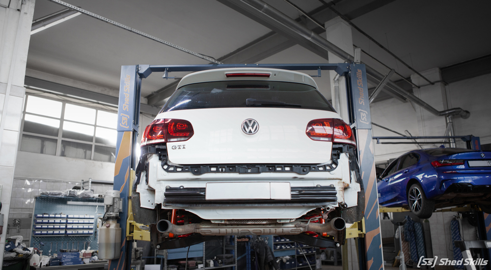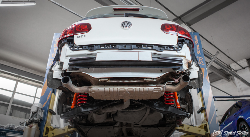 В результате диагностики данного авто, было принято решение полностью заменить подвеску задней оси. В качестве альтернативы был выбран комплект от надежной компании Eibach. Данный вариант только подчеркнет резвый характер GTIайки.