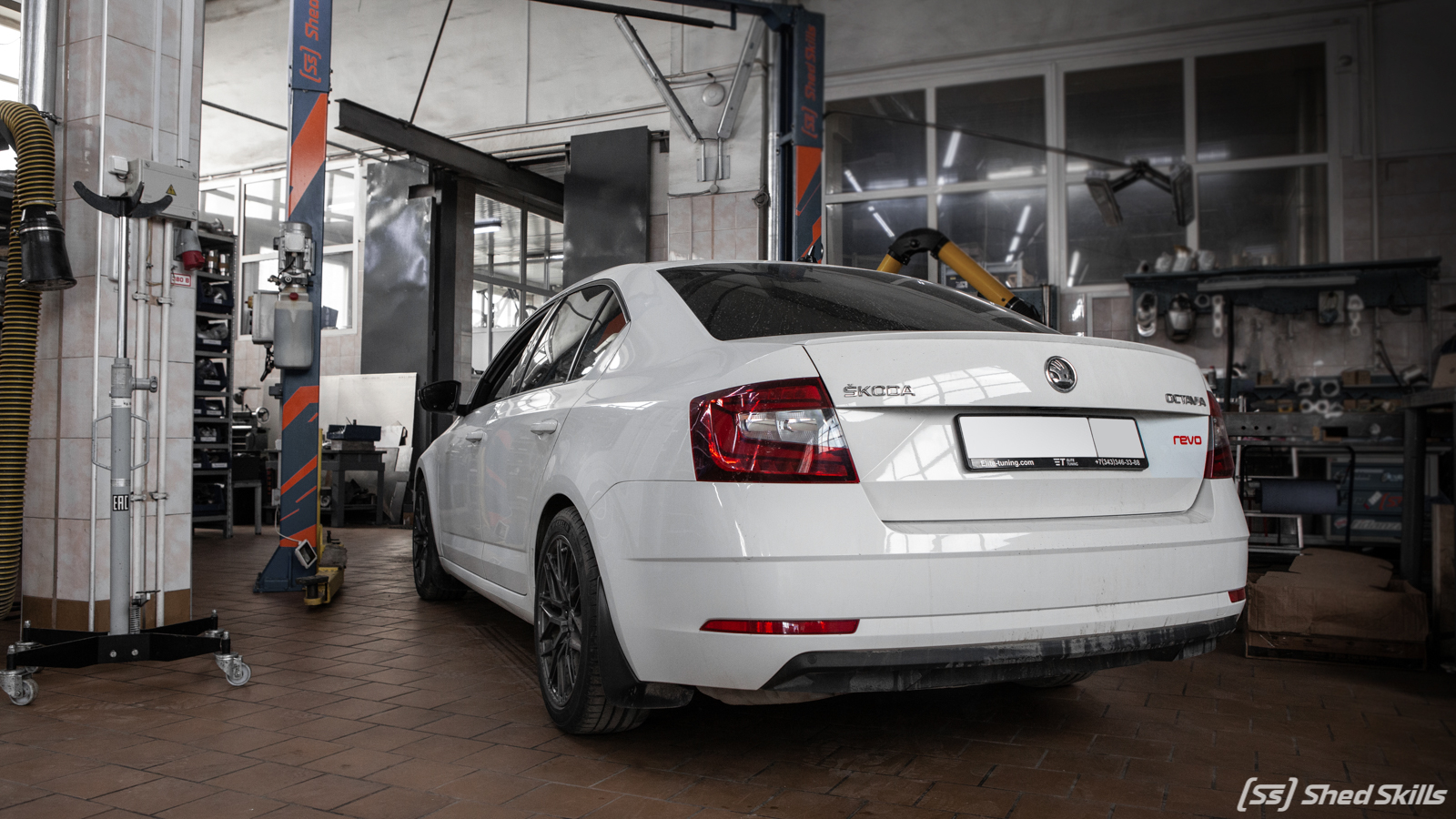 Автомобилю Skoda Octavia 1.8 TSI в автомастерской ShedSkills проводились работы по замене турбины, установке даунпайпа и чип-тюнингу.