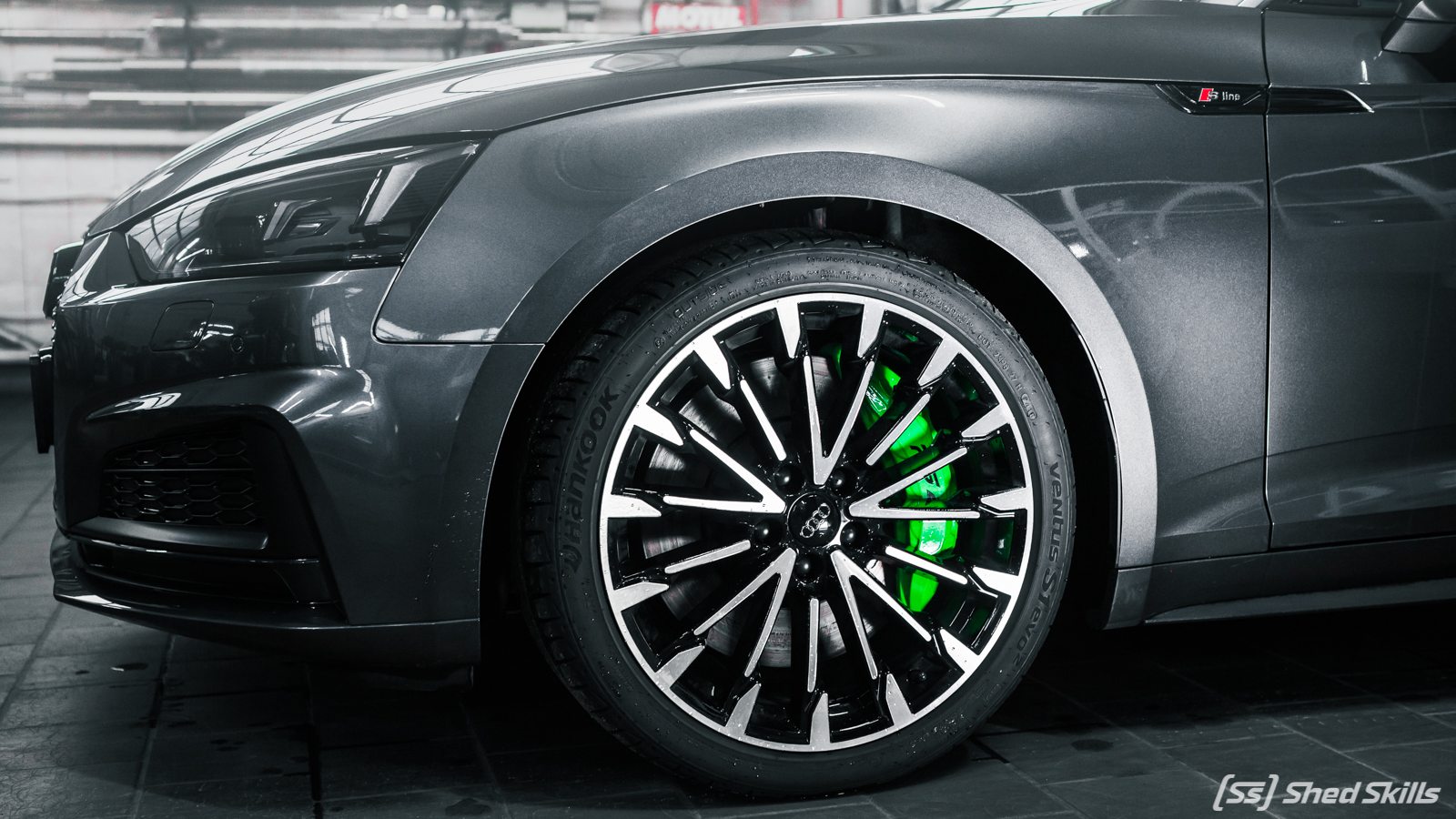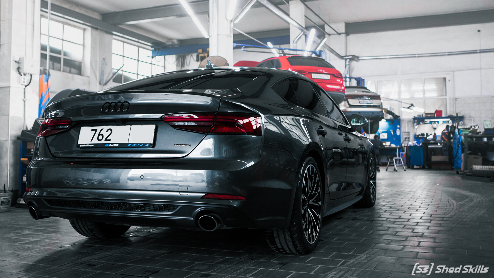 Хозяйка автомобиля Audi A5 Sportback любит динамичную езду. Поэтому она столкнулась с проблемой того, что штатных тормозов не хватало. Этот факт портил всю радость управления быстрым авто, да и значительно влиял на безопасность. Было принято решение о необходимости доработки штатной тормозной системы в стенах ShedSkills.