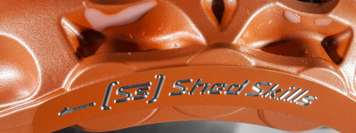 Первым делом суппорты Audi S6/S7 были разобраны и отправлены на первую стадию покраски, затем с помощью фрезерного станка была нанесена глубокая гравировка с надписью ShedSkills, после чего суппорты покрывались лаком повторно!