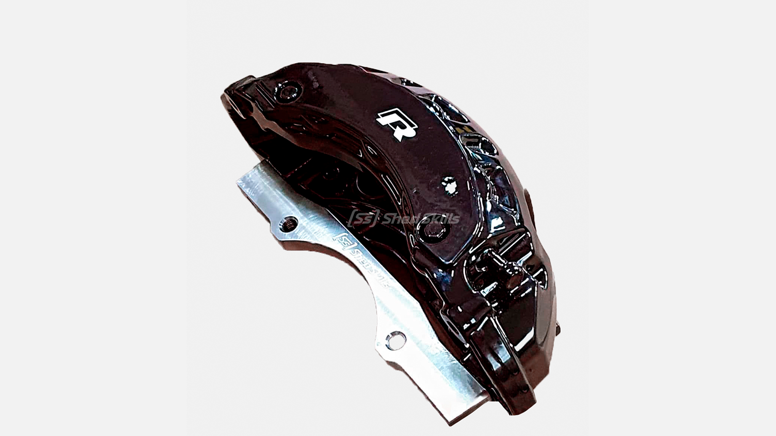 Суппорта покрашены черной трёхслойной краской с эмблемой R и полностью перебраны на новый ремкомплект. Подобраны болты крепления к проставке и поворотному кулаку.