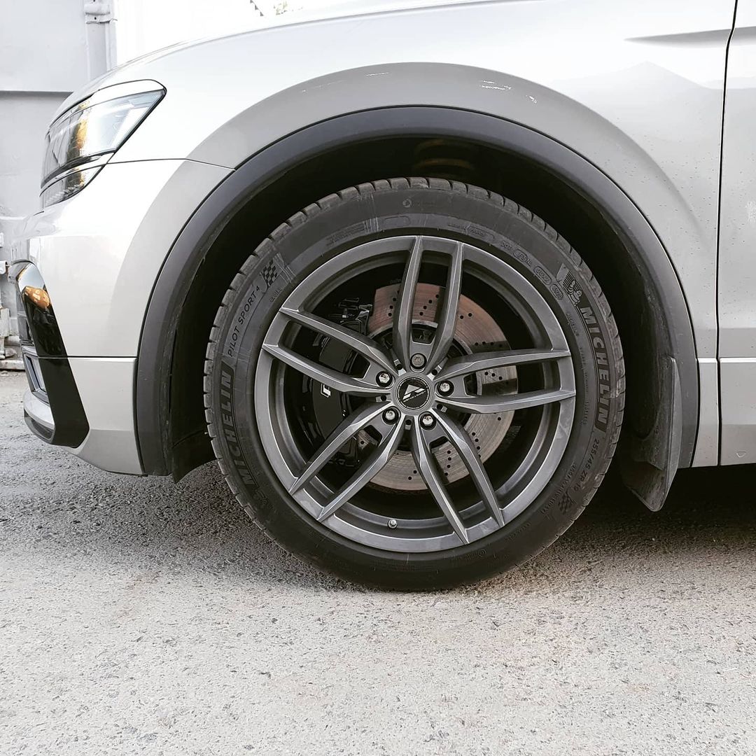 Данный проект подразумевал применение б/у суппортов, некогда стоявших на VW Tuareg 5.0. Но вот незадача, суппорта нам достались в очень плачевном состоянии, с выработкой на поршнях, с облезлой краской и прикипевшими болтами. Также клиент привез новые диски от Audi rs-q3 последнего поколения, диаметром 376 мм. И всю эту "красоту" необходимо было адаптировать на один из самых быстрых Tiguan в Екатеринбурге.
