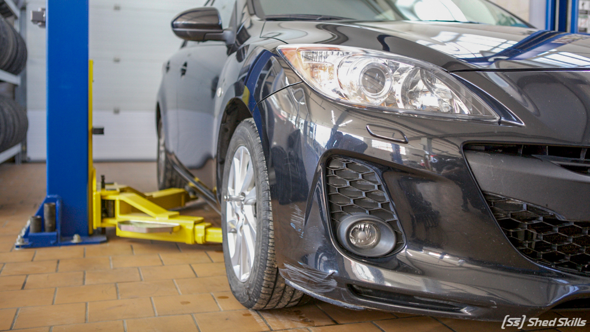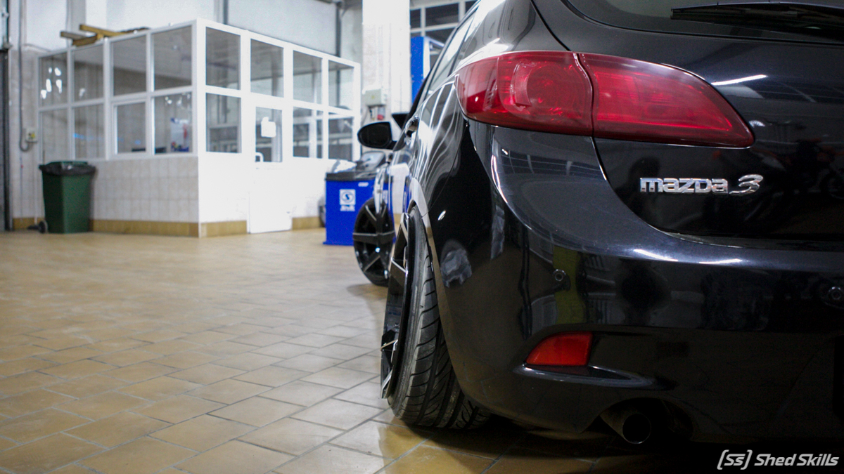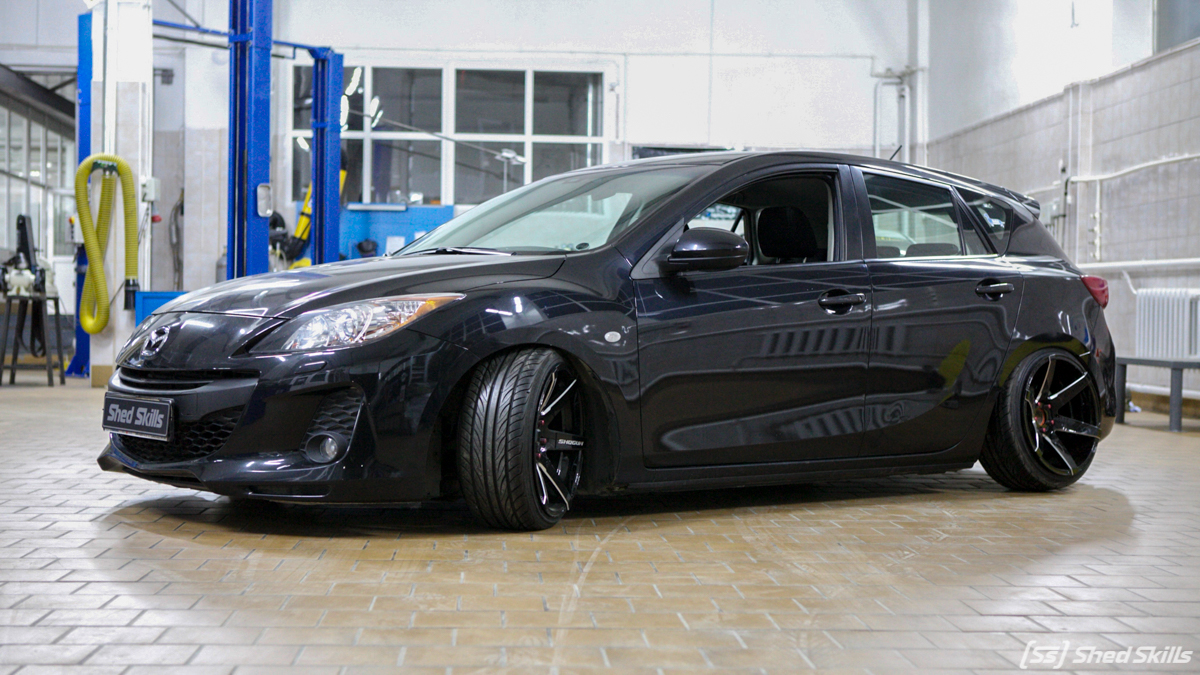 Винтовая подвеска, разваленные рычаги, шиномонтаж и сход-развал! Все эти работы кардинально изменили облик автомобиля Mazda 3.
