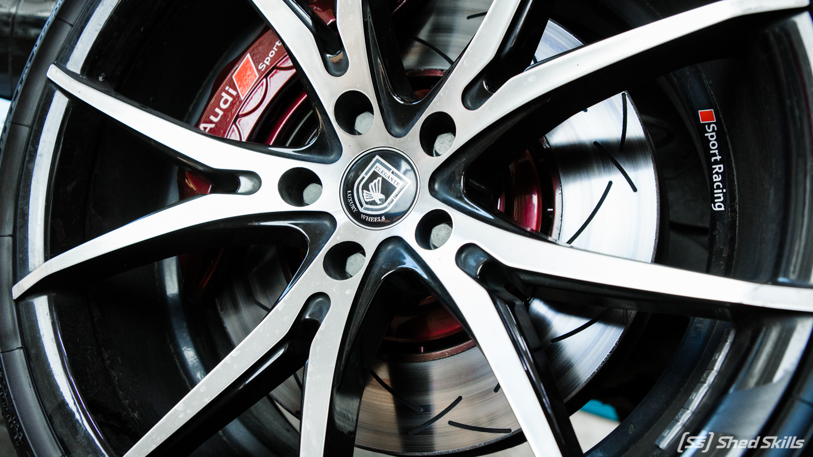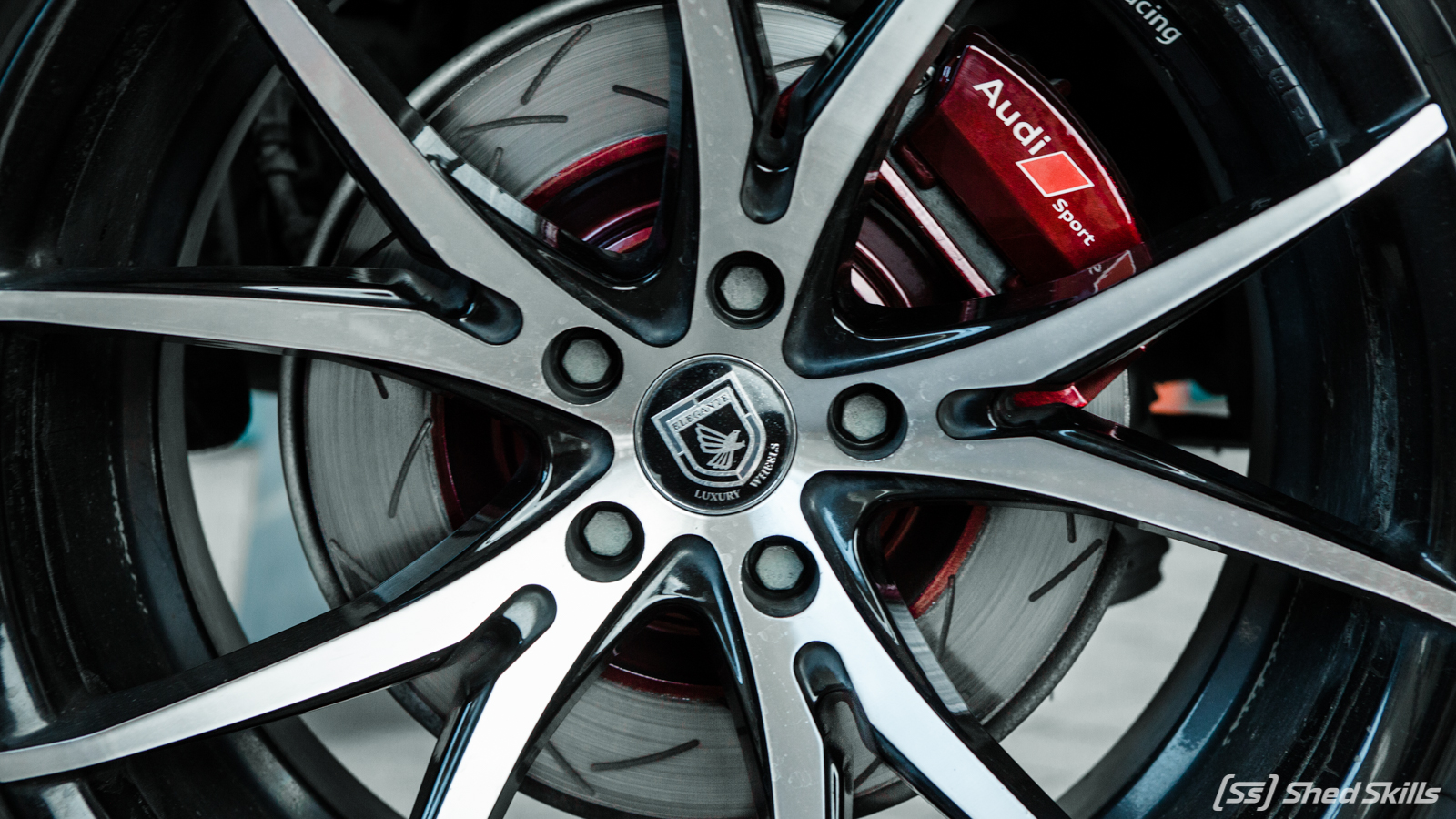 Было принято решение установить комплект более эффективной тормозной системы от следующего поколения Audi A7 в кузове C8 - это передние 6-ти поршневые суппорта и тормозные диски 375 mm.