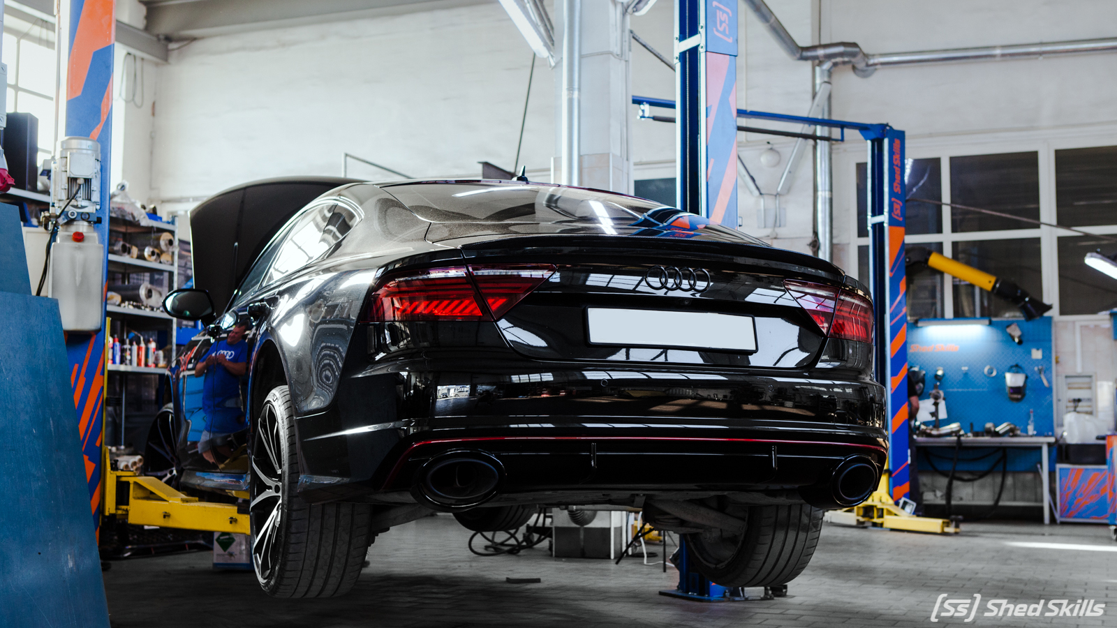 Вот и владелец этой Audi A7 обратился к нам для установки более производительной тормозной системы. Так как ранее данный автомобиль уже подвергся тюнингу по части мощностных характеристик, то стандартных тормозов стало не хватать.