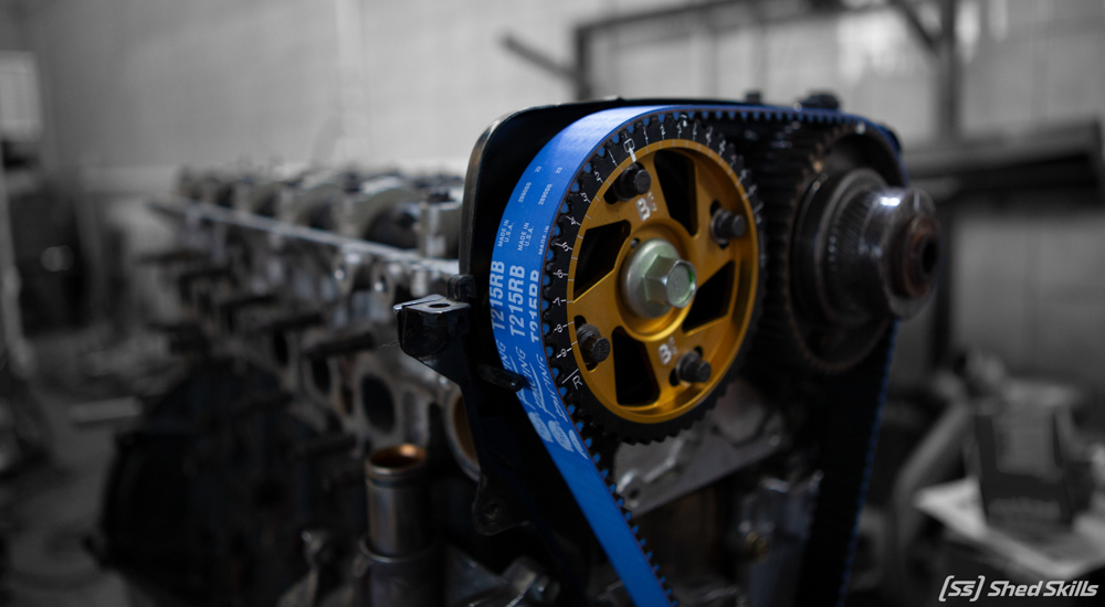 Первым, с чего началась постройка автомобиля, был двигатель. Тут все по классической схеме - берем блок цилиндров 2JZ-GTE, ставим кованные шатуны Manley H-Beam 14027-6 и комплект поршней FSR (Forged Side Relief) (296932) от JE Pistons c ассиметричной геометрией юбки (часть юбки, на которое идет большее давление, имеет большую площадь (юбка F-типа)), и со смещением центра пальца. Далее наматываем все это на коленвал, ставим головку блока с ГРМ, в котором помимо валов и клапанов: