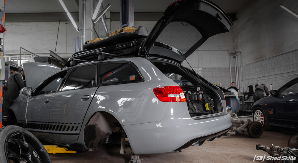 Мастерская ShedSkills одна из первых в России, кто взялся и реализовал в полной мере такой амбициозный проект. Была поставлена задача превратить передний привод Audi A6 Avant в полный.