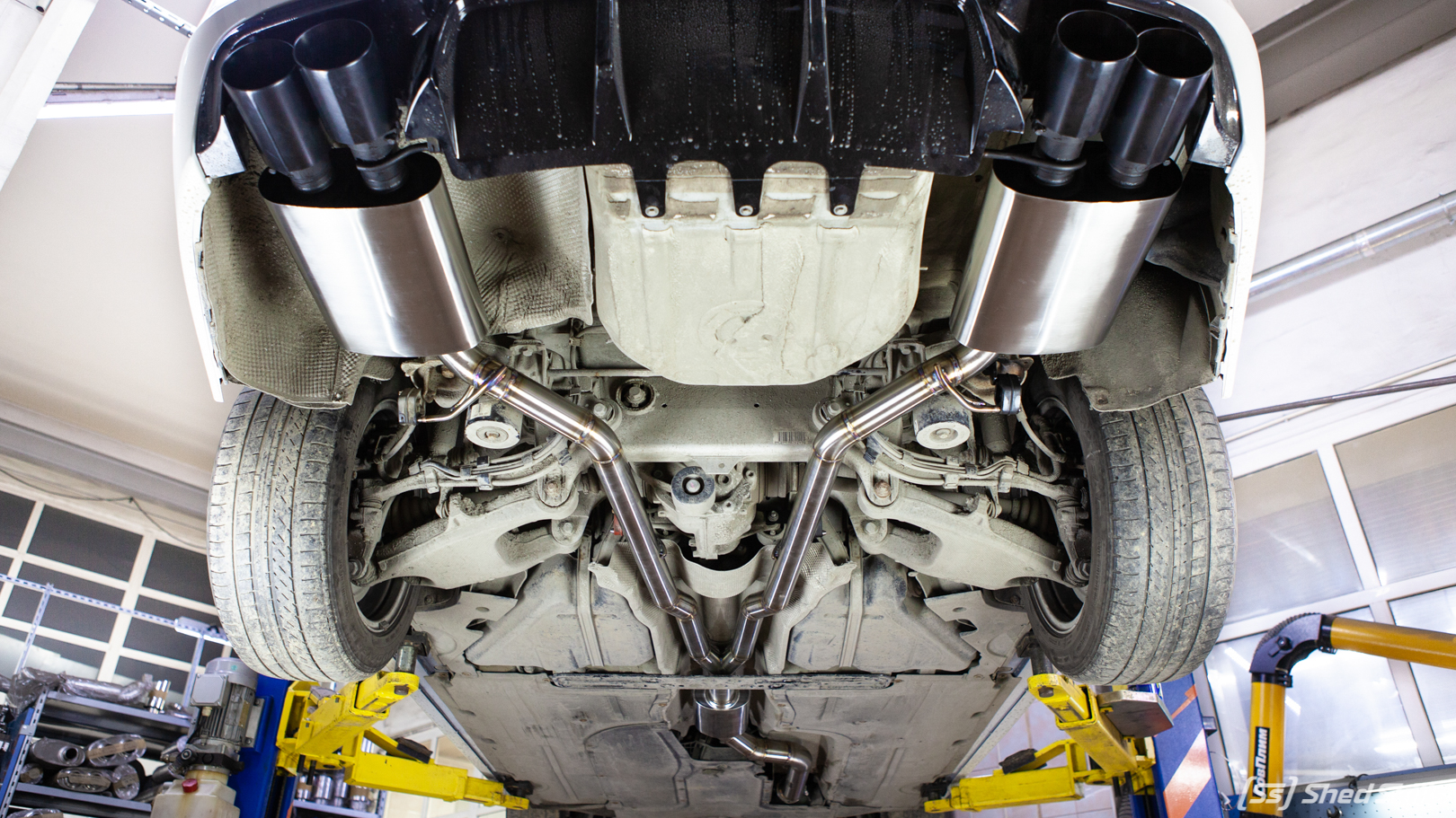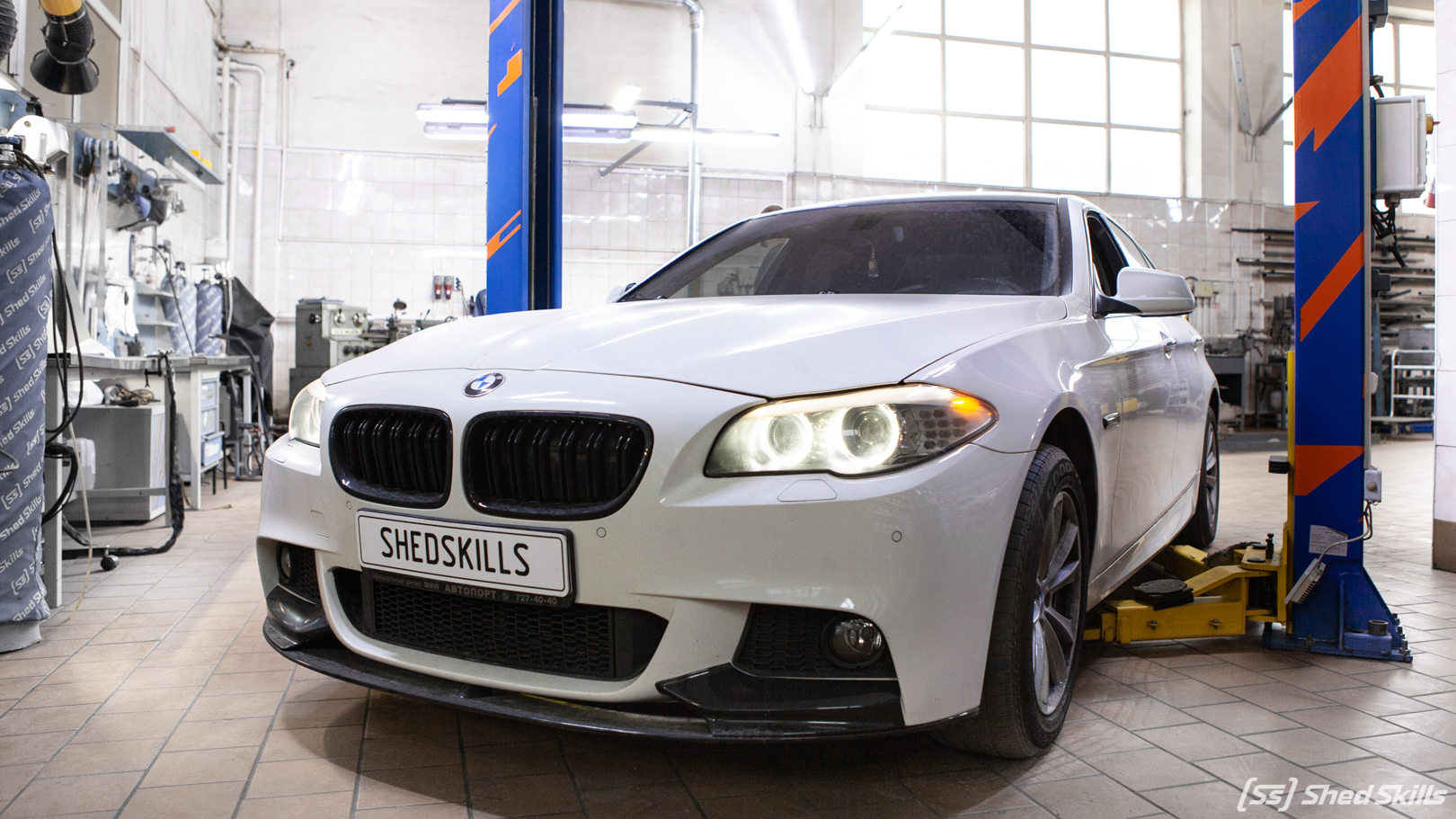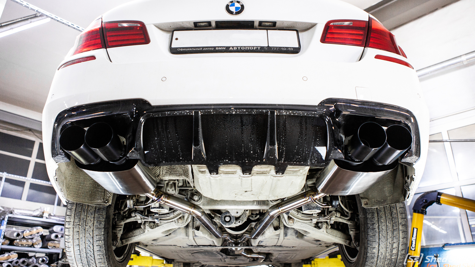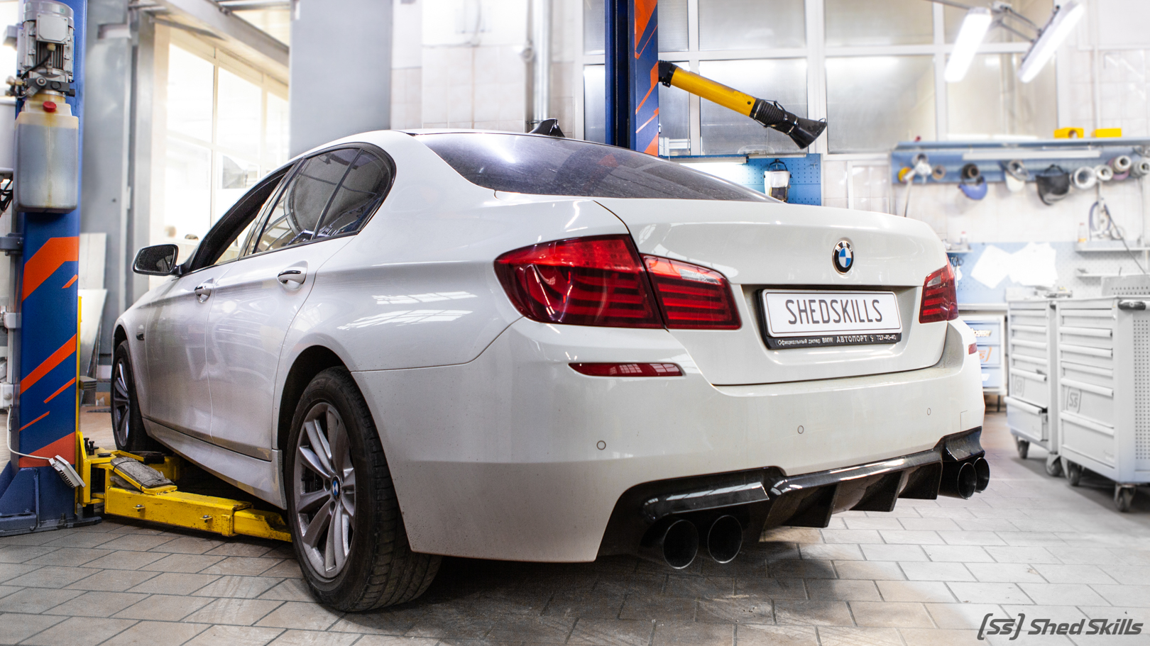 Владелец шикарной "Белоснежки" BMW F10 5series обратился в автомастерскую ShedSkills с задачей создать приятное звучание при среднем уровне громкости выхлопа, сохранив при этом программные прострелы при сбросе газа.